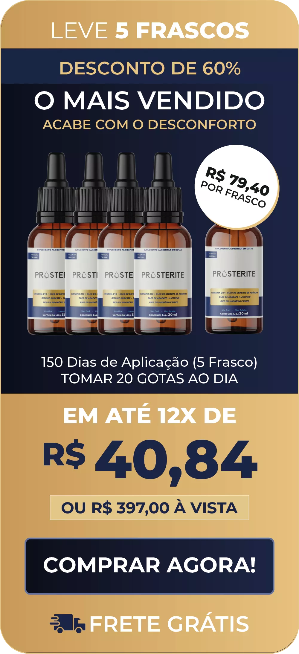 Com sua composição poderosa, o Prosterite alivia a sensação desconfortável de bexiga cheia, proporcionando maior conforto e bem-estar.